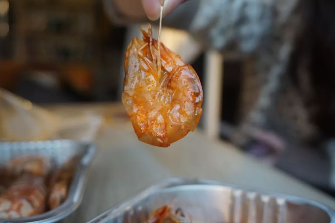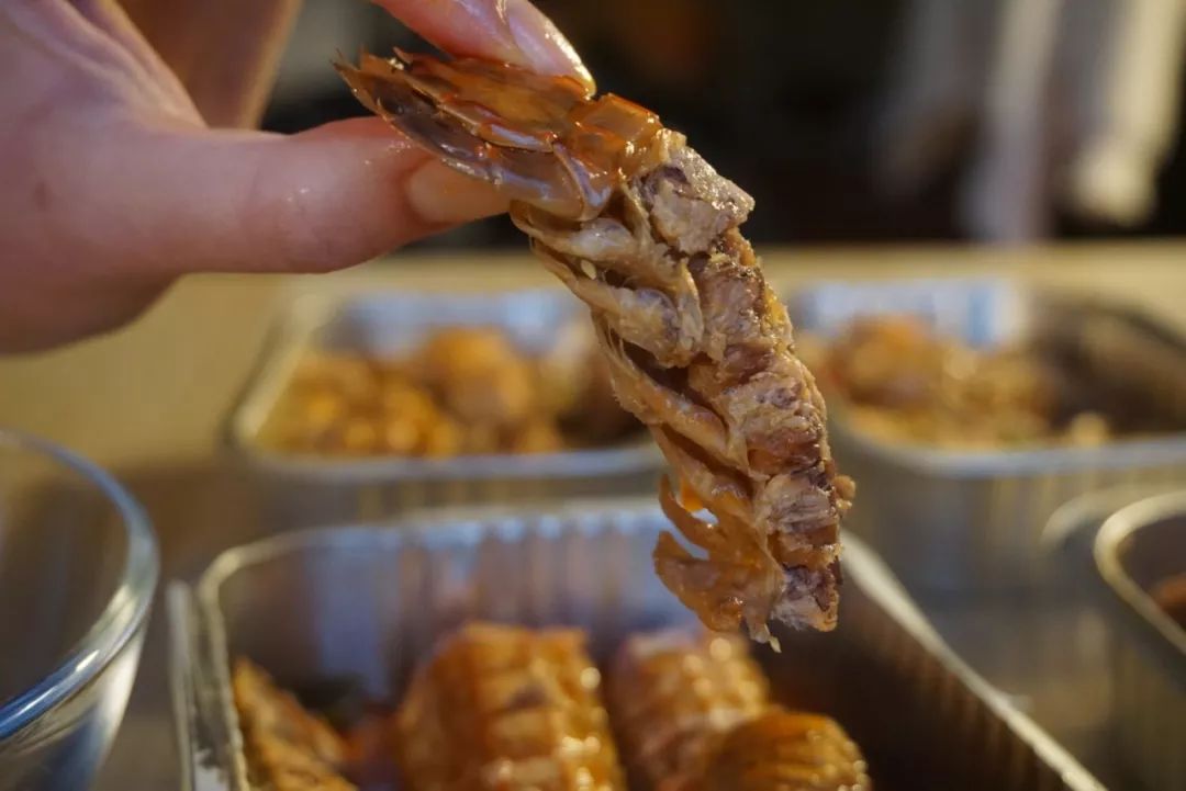 在醬汁中浸潤(rùn)了一段時(shí)間,晶瑩的蝦肉洗飽了湯汁,咬一口能感覺到很有嚼勁。