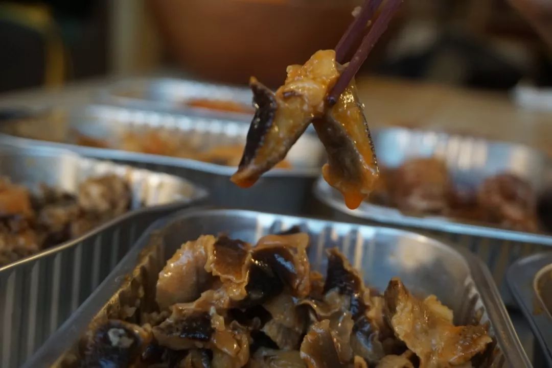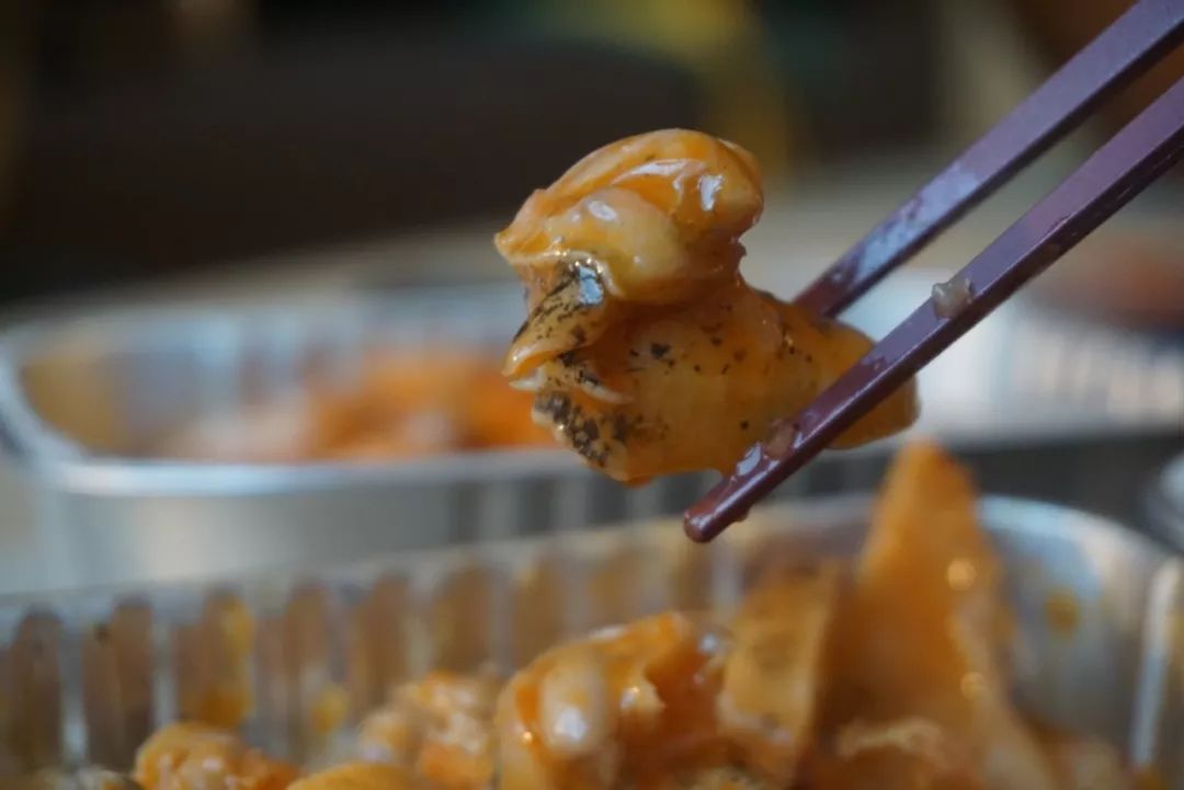 本場(chǎng)測(cè)評(píng)的最后一款黃金鮑肉,本來(lái)大家已經(jīng)吃的半飽了,但嘗了一口后紛紛又把筷子伸向了碗里。